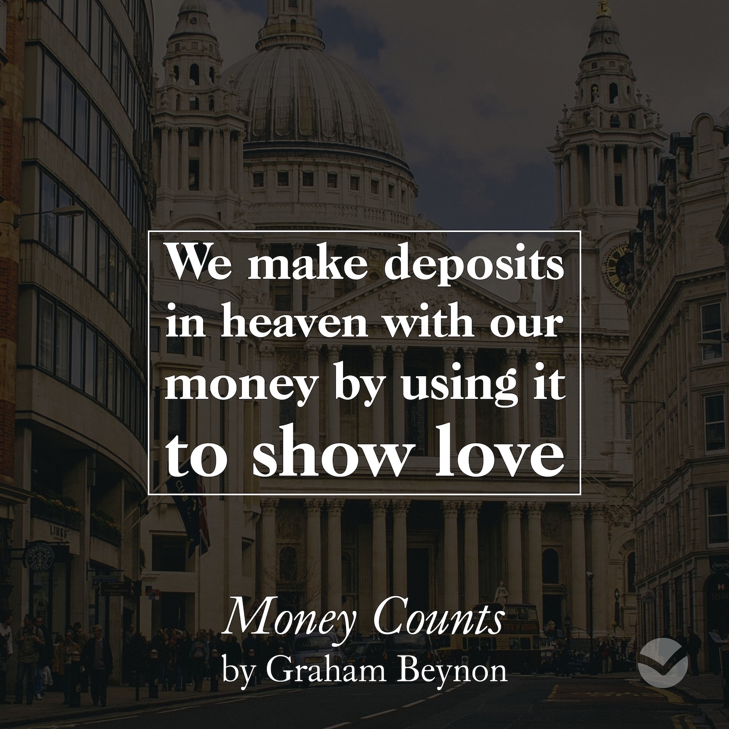 "We make deposits in heaven with our money by using it to show love." (Graham Beynon, Money Counts)