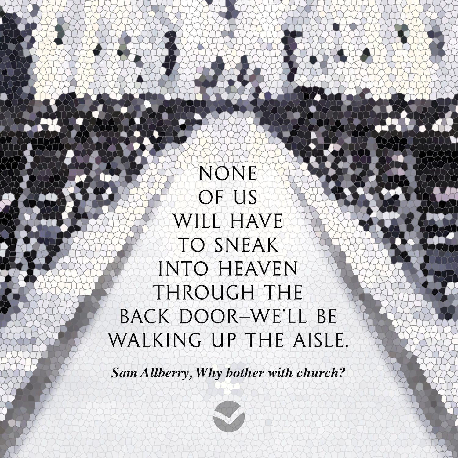 "None of us will have to sneak into heaven through the back door–we'll be walking up the aisle." (Sam Allberry, Why bother with church?)