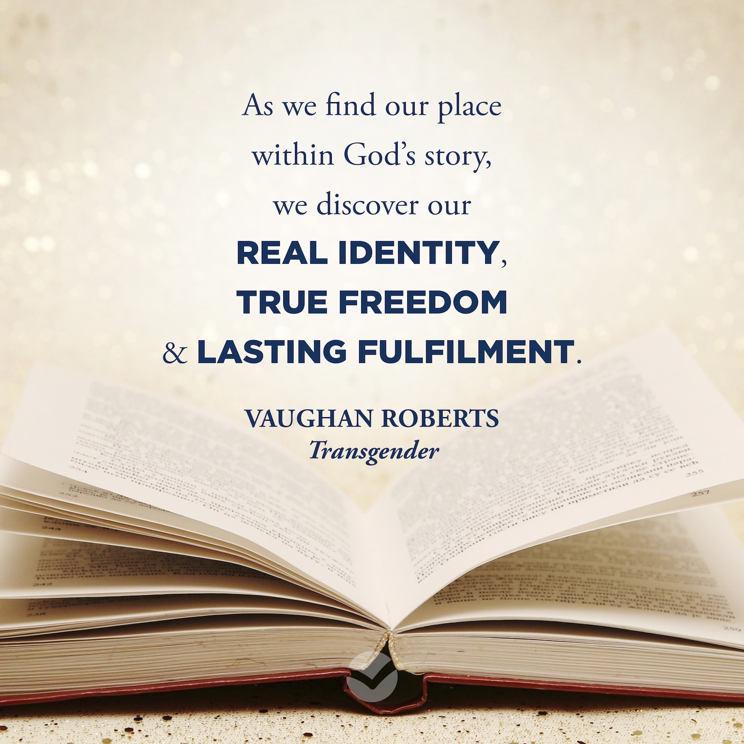 "As we find our place within God's story, we discover our real identity, true freedom and lasting fulfillment." (Vaughan Roberts, Transgender)