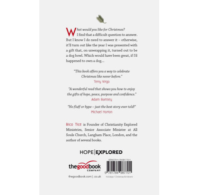 This brief book addresses the core things that people desire showing how hope, peace, purpose, and confidence are central to our ideas of the good life even when we disagree about how to get there. Evangelist Rico Tice shares brief anecdotes and stories from the gospels to illustrate these different ideas, showing how Jesus provides all of those things and more. Unlike some Christmas books, Tice doesn't mainly focus on the Nativity story, but gives a sense of the scope of Jesus's life, earthly ministry, death, and resurrection.