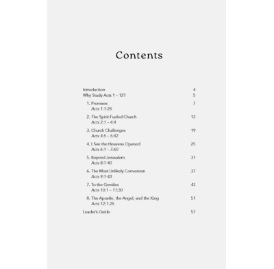 Easy-to-lead, 8-session Bible study on Acts 1 – 12 that charts the birth of Christ's church. Part of the best-selling Good Book Guide series with over 1 million copies sold.