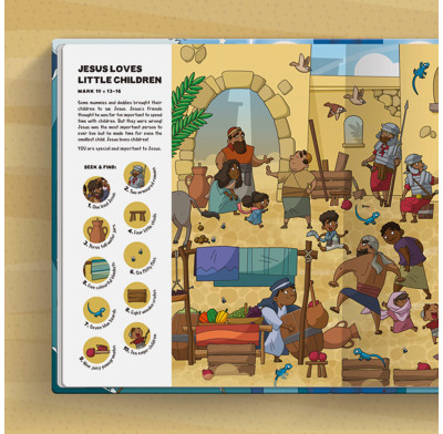 Seek and Find: New Testament is an eye catching, fun and faithful retelling of Bible Stories.